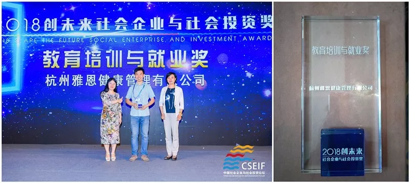 2018年,雅恩健康荣获中国社会企业与影响力投资论坛颁发的“教育培训与就业奖”。