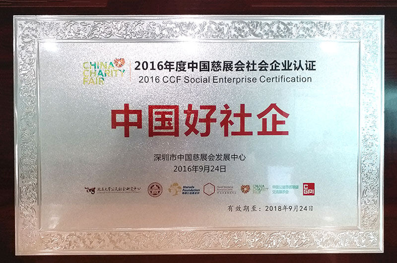 2016年,雅恩健康从154家申请企业中脱颖而出,荣获由中国慈展会发展中心颁发的“2016年度中国慈展会社会企业认证——中国好社企”称号。