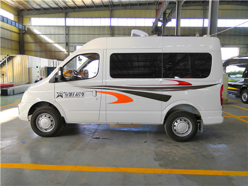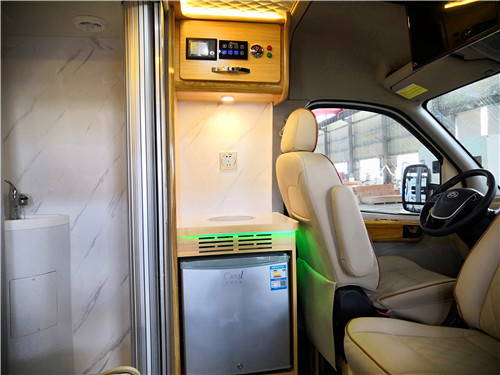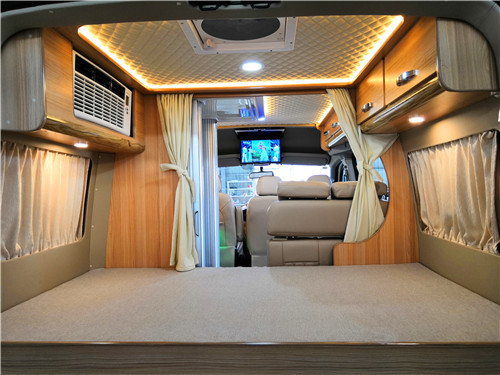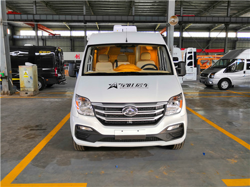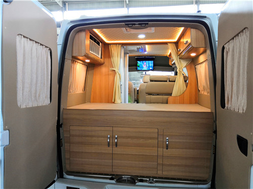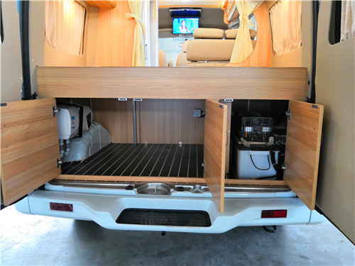 先来看看国六大通B型房车外观,整车外形尺寸5785*2000*2552(裸车高度)mm,包含顶置空调的高度为2700mm,轴距3100mm,基于大通V80 底盘改装,搭载一台2.0T单增压柴油发动机,匹配6速AMT手自一体变速箱,最高安全车速可达160千米/时。