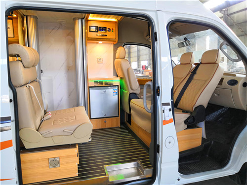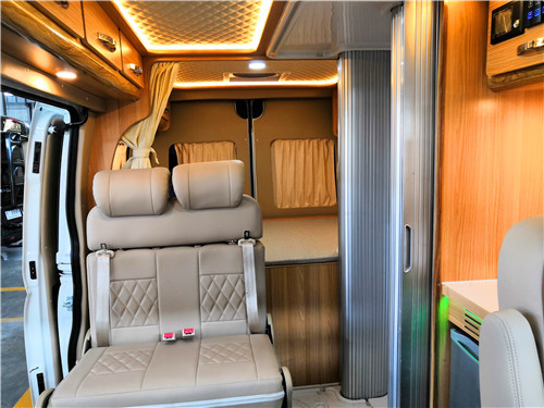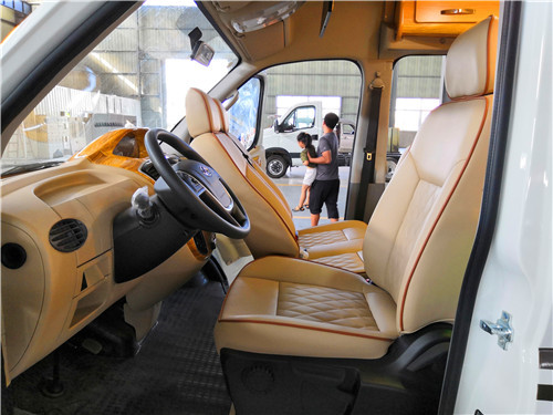 整车座椅窗采用超纤皮料软包,防水耐磨。采用主一副二设计,副座可360°旋转。