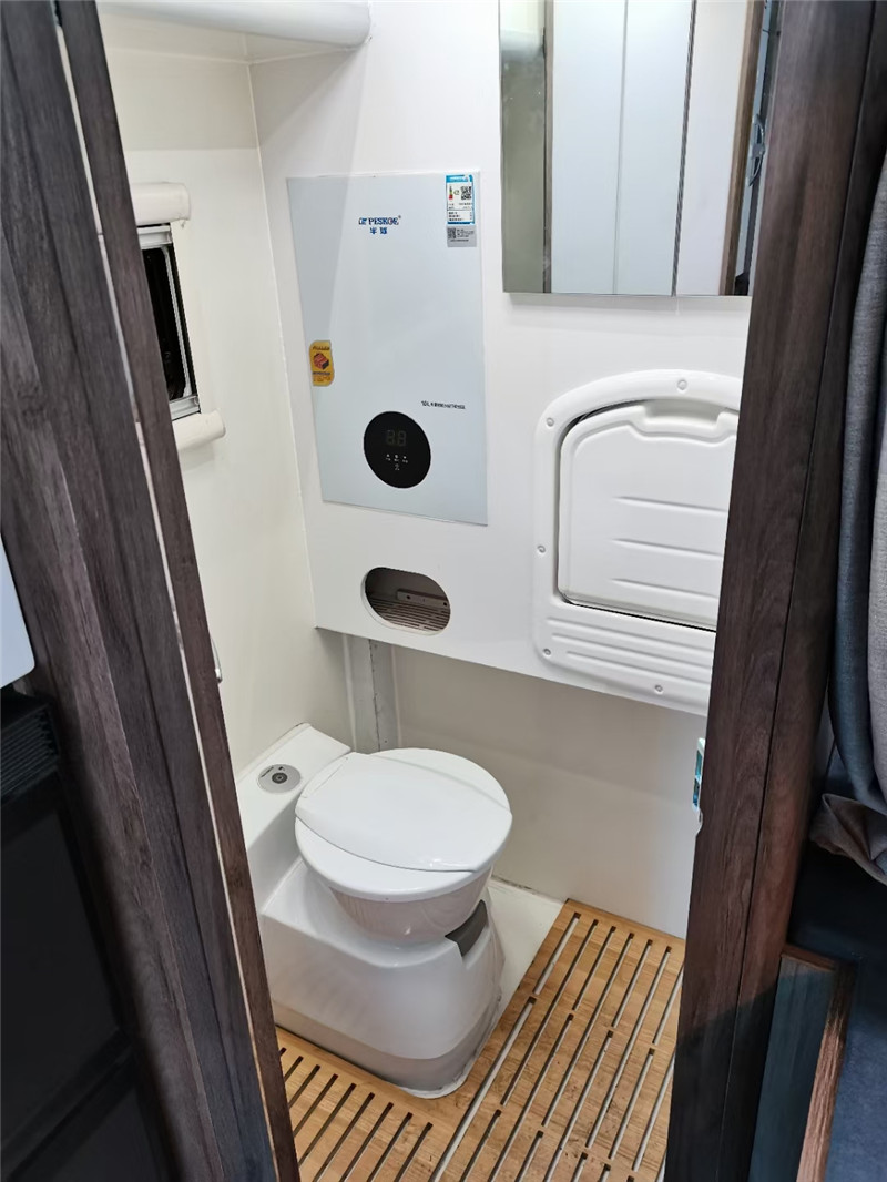 厨房吧台总成,圆形洗菜池,电磁炉,微波炉,能满足你烹饪美味佳肴的需求。吧台下面是储物空间、吧台上方的外推窗。整车采用的智能语音控制系统。