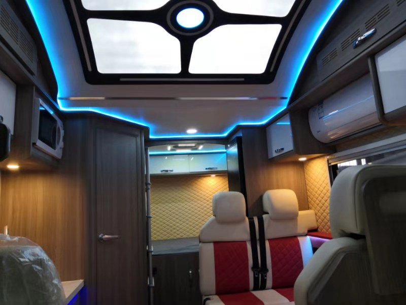 车的顶部星空顶/九宫格+LED氛围灯,进入车内是否有中家的感觉呢?特有的星空顶总会让人浮想联翩,驻车野外外面一个星空里面一个星空,你可以什么都想也可以什么都不用想。这大概是房车该有的生活体验吧。