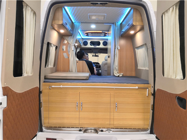 自行式B型房车外部看上去和普通的商务车一样,没有硕大的额头,身材苗条不臃肿。这款房车整体给人的感觉就是低调沉稳,不张扬,走近它,你会发现它简约的外表下,却有一颗丰富有趣的灵魂。可商务可旅行的B型房车。