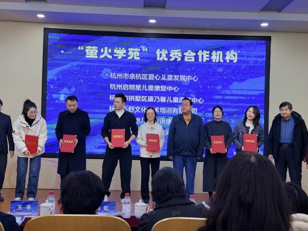 12月27日,拱墅区“萤火学苑”2025年度总结会及教师培训专场在杭州市湖墅学校圆满举办,这场以“萤火汇聚·融爱未来”为主题的盛会,全面复盘了全省首创融合教育标杆项目“萤火学苑”的年度成果,也对为项目发展作出突出贡献的单位与个人进行了表彰。雅恩健康凭借在“萤火学苑”融合教育项目中的专业表现与实践成效,获评“萤火学苑优秀合作机构”,在拱墅区教育局及区特教指导中心的带领与指导下,为拱墅区融合教育工作贡献自己的专业力量。
