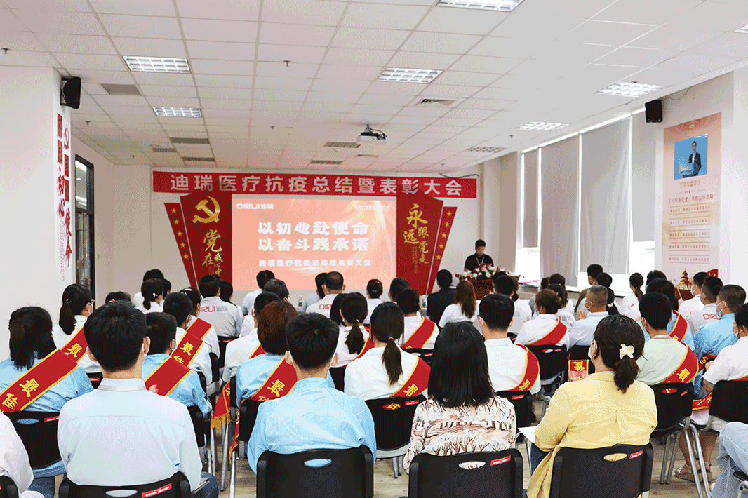 8月19日,迪瑞医疗在长春总部举行了主题为“以初心赴使命,以奋斗践承诺”的抗疫总结暨表彰大会,公司党总支书记、总经理王学敏,执行总经理郑国明,部分高管人员及获奖员工和团队代表共计70余人参加了本次会议。