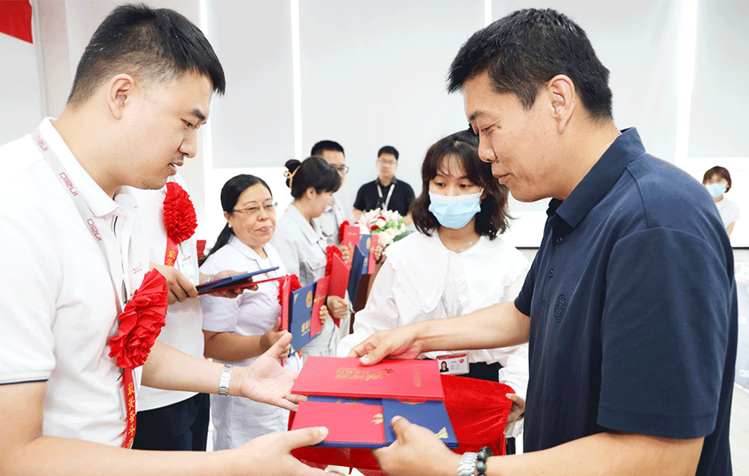 在随后进行的颁奖环节中,迪瑞医疗共计向216名员工颁发“最佳坚守者”奖,向20名员工颁发“最美奋斗者”奖,向试剂生产基地团队、仪器生产基地团队、后勤保障团队、党群支援团队颁发“卓越奉献团队”奖。