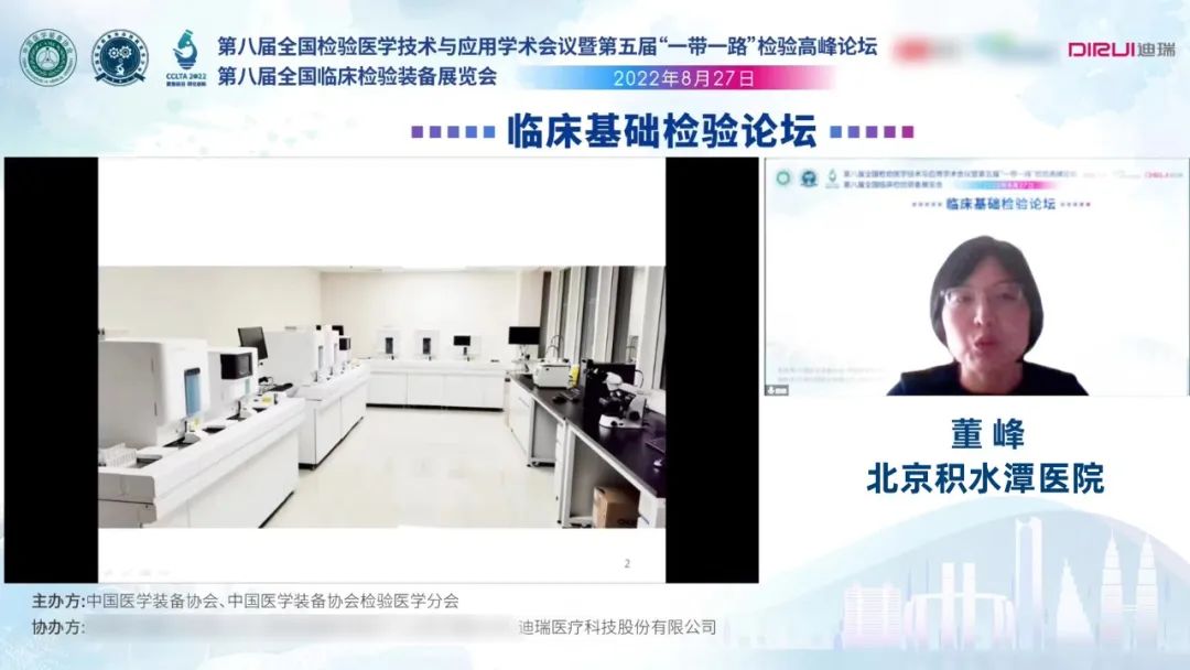 8月25日-28日,由中国医学装备协会、中国医学装备协会检验医学分会主办的第八届全国检验医学技术与应用学术会议暨第五届“一带一路”检验高峰论坛第八届全国临床检验装备展览会顺利召开,以“聚焦前沿 转化创新”主题,国内外医学检验领域专家学者及检验医学的管理人员、技术应用人员等齐聚云端,围绕国家生物安全、抗击疫情平战结合、AI智慧医疗、DRG医改、体外诊断路径、技术攻关等话题进行探讨。 在2022CCLTA临床基础检验论坛中,北京积水潭医院临检组技术组长董峰老师对“流动式显微成像人工智能识别技术在快速筛查疑似尿路感染患者中的临床应用研究”进行了讲解。董峰老师针对基于平面流式成像技术的迪瑞MUS-3600尿液分析系统,在疑似尿路感染(UTI)患者中的诊断效能及临床应用价值此项研究做了专题分享,从实验背景、实验目的、实验设计、实验结果等方面,详细介绍了研究成果,受到检验、临床医生的广泛关注与好评。